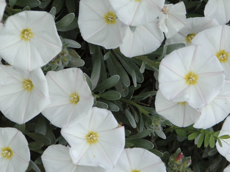 Rustico cespuglio sempreverde di origine mediterranea dal portamento a cuscino ed altezza massima di 60 cm. Il denso fogliame è ricoperto da una fine peluria che gli conferisce riflessi argentei. In primavera la pianta si ricopre di fiori campanulati bianchi con centro giallo e sfumature rosa nei boccioli.